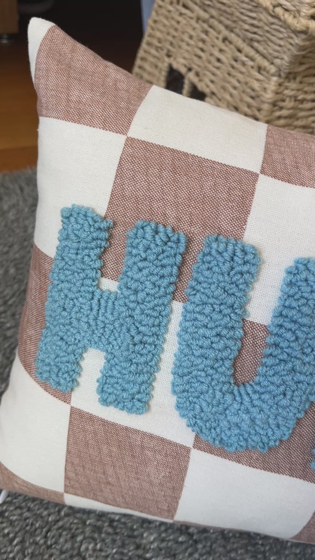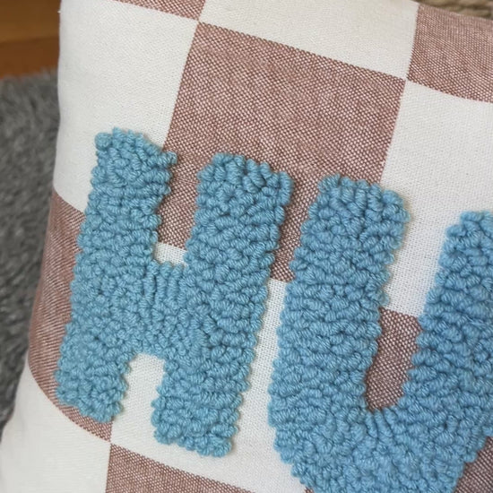 Checkered Personalised Punch Needle Decorative Cushion